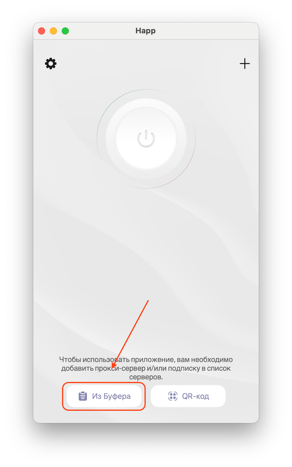 Запустите установленное приложение, нажмите на кнопку «Из буфера», чтобы добавить скопированную ссылку на подписку